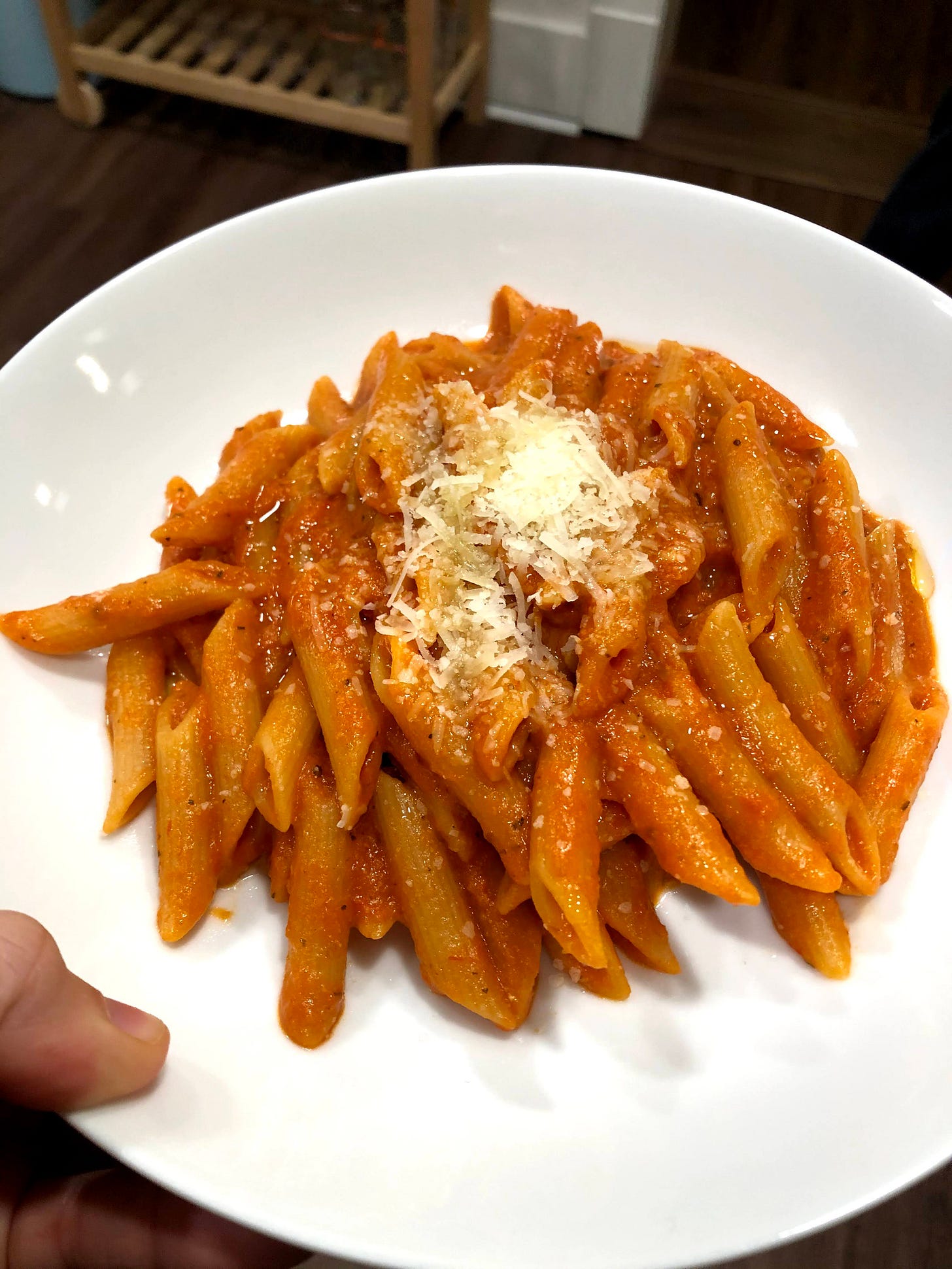 A food blogger that I follow and admire is Female Foodie. My dad introduced me to her over Sunday brunch one time and I’ve been following her ever since. During lockdown this past spring she began posting a lot of cooking content and one of her most popular recipes was the pink pasta sauce. I thought it was kind of boring because I typically regard most tomato sauces as boring (don’t hate me) and so I happily forgot about it. (A more normal me will brew over recipes I think are interesting for days- WEEKS - at a time until I give in and make the recipe.)